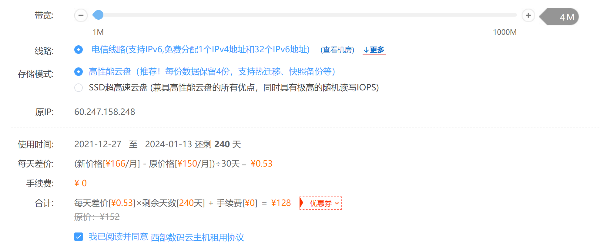 2、建议您升级到5M带宽. 另外也可以 按天 临时升级带宽 如图 ,非常感谢您长期对我司的支持!