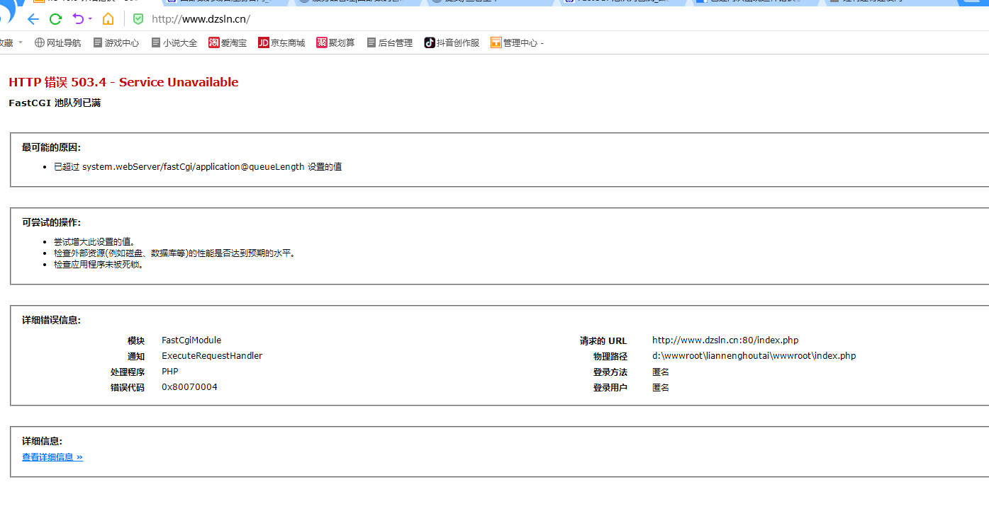 问:系统升级后www.dzsln.cn 这个网站出现问题