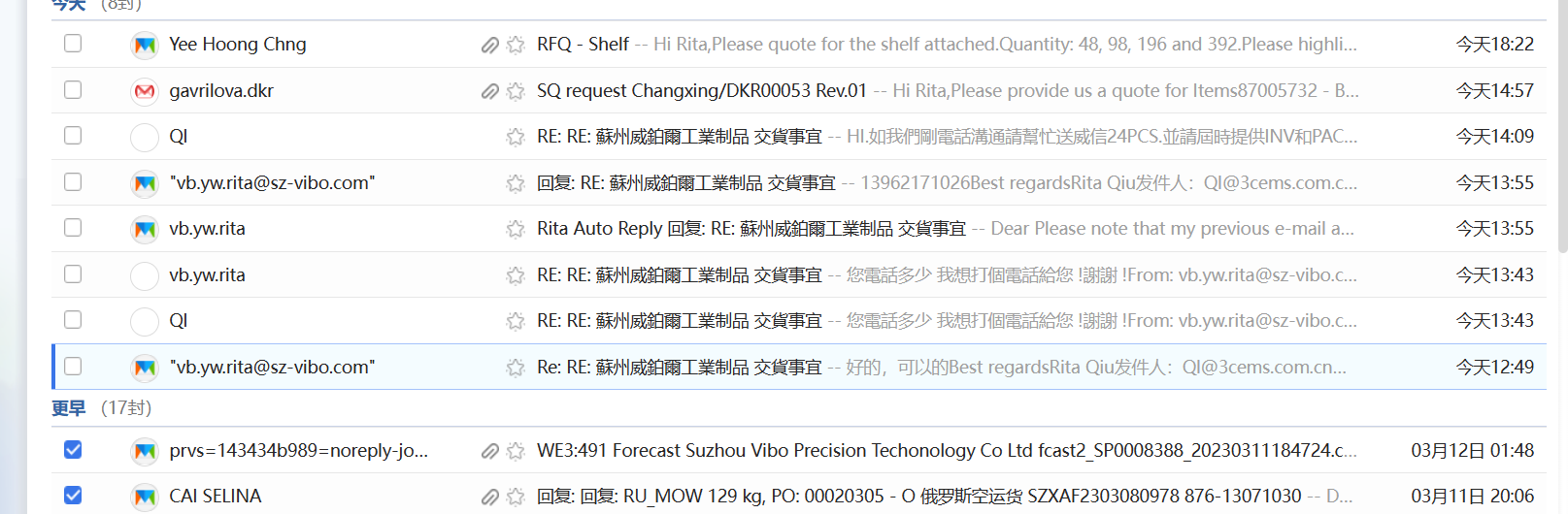 答:您好,查看已删除里面有13号到今天的邮件,总共有79封。请登录网页端到“已删除”里查看是不是这些邮件,非常感谢您长期对我司的支持!