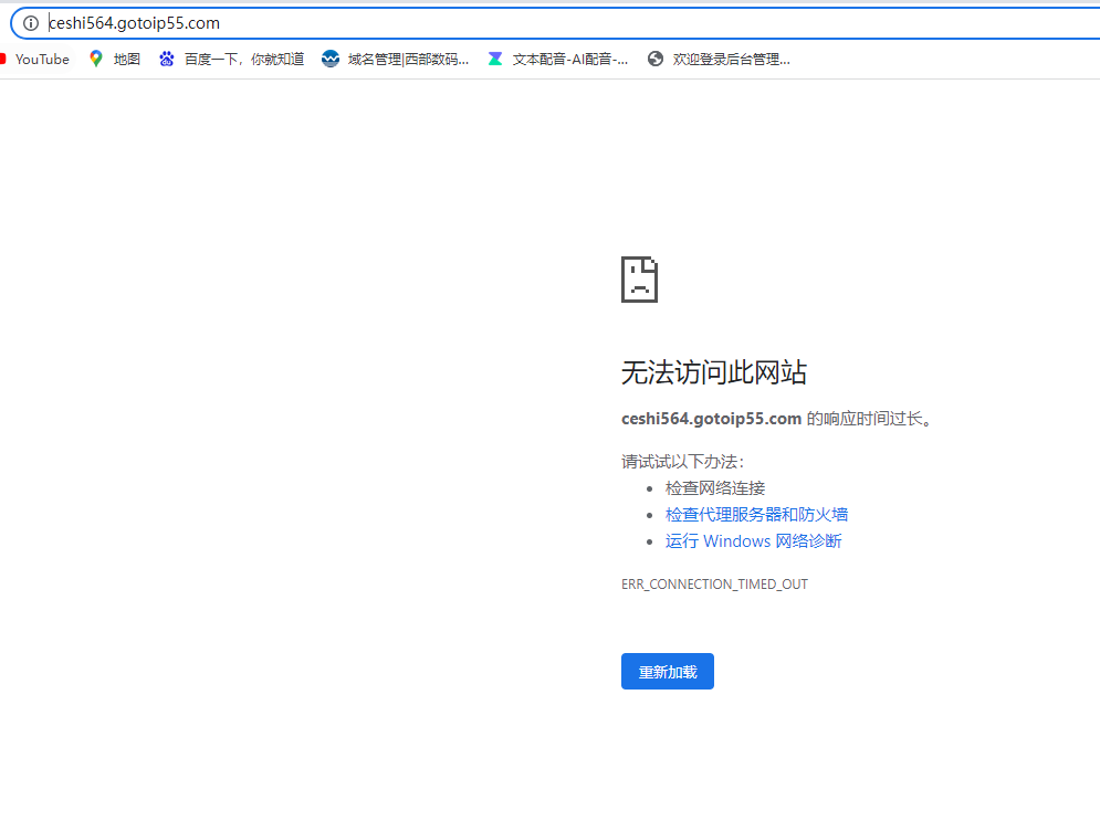 通过我们提供的测试域名可以访问,您只需要绑定您自己的域名到空间上并别名cname指向到ceshi564.gotoip55.com 就可以通过您自己的域名访问了。