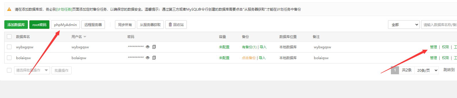 1:phpmy访问并不会涉及3306端口,并且访问后本身就需要二次登陆,这是宝塔自身的安全设置,
