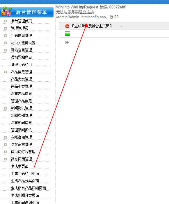问:后台地址:https://www.leishengroup.com/ 网站后台动态ASP生成静态HTML突然不行了