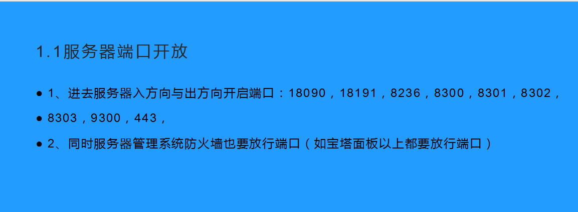 问:服务器放行一下这些端口,出方向和入方向都需要,谢谢