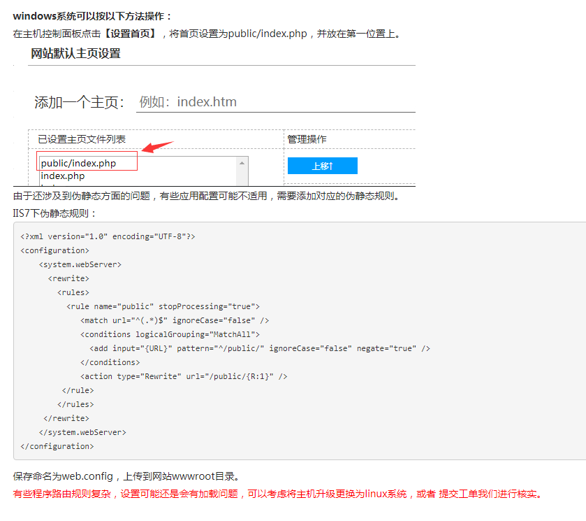 问:按照这个方法,设置了首页,www里放了web.config文件,首页打开了,但是所有的链接上多了 如下:这些链接都打不开,怎么解决,虚拟空间,部署tp5程序