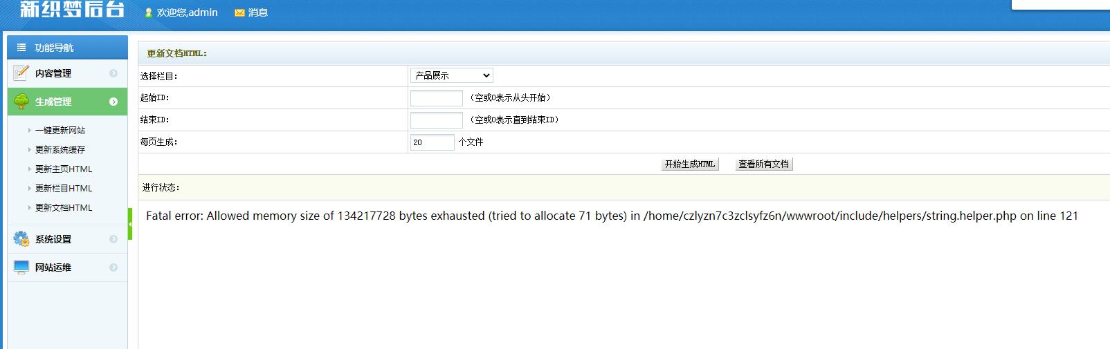 答:您好,原因是由于您产品展示中一些文档的图片是采用加密字符方式存储到数据库中,造成存储内容很大导致执行时内存溢出,请逐一检查相关文档删除重新上传内容中图片使用url方式存储,正确方式见截图:,非常感谢您长期对我司的支持!