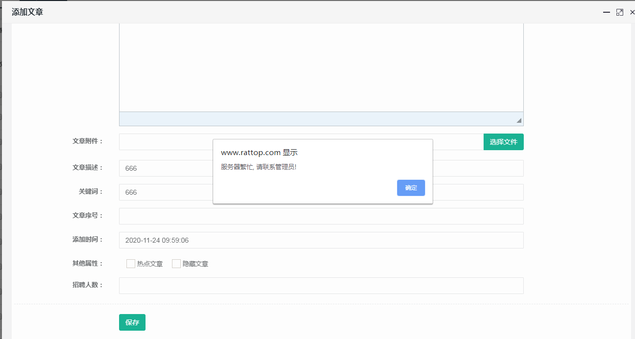 问:,网站后台上传内容,出现:服务器繁忙问题