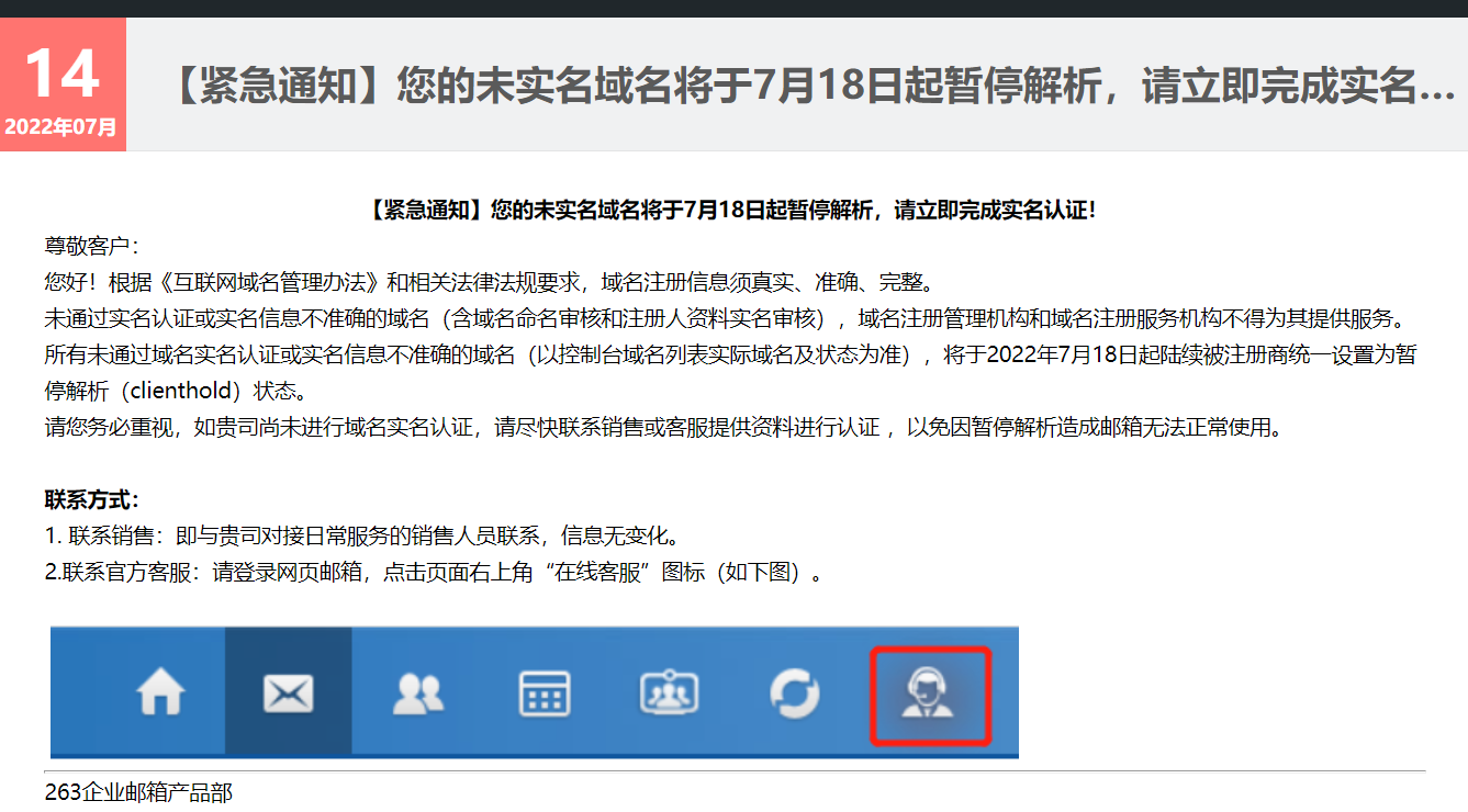查看此通知邮件并非我司通知的,可能是您之前在其他的服务商处有业务的相关通知。目前您账户下域名均已实名成功,请您知悉。非常感谢您长期对我司的支持!