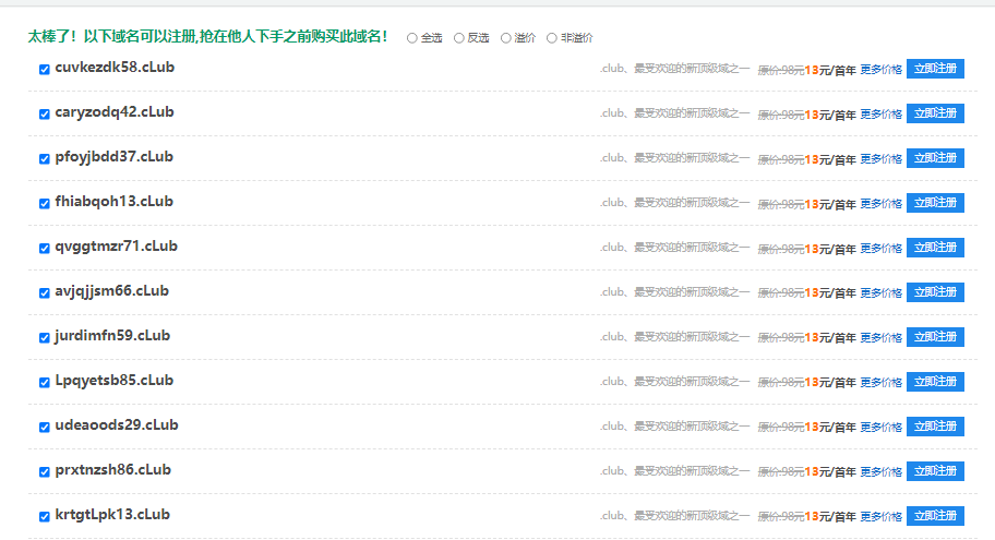 问:qlbtnegu89.clubxwhkykjr55.clubfqzdgsjv67.clubagjitafb70.clubvvbdrdfw50.clubryhhgigk48.clubfqmeanyi49.clubzwriortq96.clubtdhjzjwc82.clubhustxurw49.clubmtnqwrqz59.clubkbfrlqzj88.clubhiekpaby45.clubaypsiqzi28.clubxsxhszwc25.clubxktppdgo81.clubpkruvlvk13.clubmxhqoelo15.clubjegublkh80.clubsclscujt91.clubkoqmddzi35.clubjbigczlo73.clubtafyjgrg87.clubgjltxknf17.clubjandxtzg11.clubizcogcie27.clubzeoncgyo86.clubernfcsab69.clubalszhbcd27.clubmganqcqr58.clubvxsktkxn52.clubfgthwhib18.clubcaryzodq42.clubcuvkezdk58.clubfhiabqoh13.clublpqyetsb85.clubudeaoods29.clubprxtnzsh86.clubkrtgtlpk13.clubjurdimfn59.clubtyygczcp12.clubavjqjjsm66.clubpfoyjbdd37.clubqvggtmzr71.club这批域名不能注册 ,麻烦查看一下是什么原因