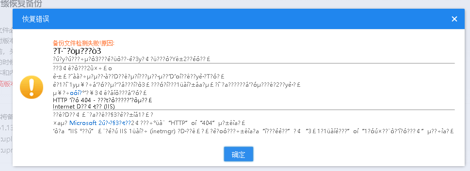 问:你好。我这个数据我还原了没有问题,本地备份了。但是在后台还原还是错线乱码