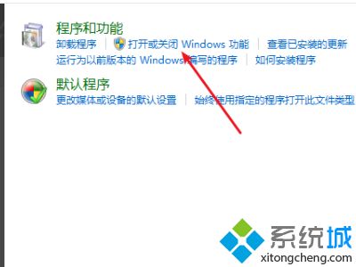 2、在弹出的程序功能对话框中,选择\”打开或关闭windows功能\”;