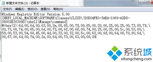[HKEY_LOCAL_MACHINE\\SOFTWARE\\Classes\\CLSID\\{20D04FE0-3AEA-1069-A2D8-08002B30309D}\\shell\\Manage\\command]