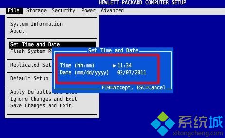 1、开机时点击F10键进入BIOS,选择File下的Set Time and Date,点击回车;