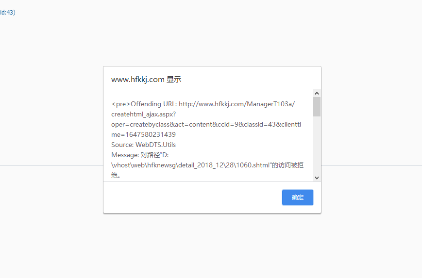 问:www.hfkkj.com、和www.ywb99.com 之前咱们帮助复制服务器数据库了,但是现在这2个网站的数据库后台更新没有任何反应。提示路径不对。就是新闻版块的更新不好用,显示如图,网站数据库打不开