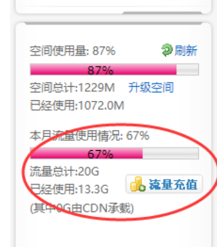 这个月每次登录看了下,每次都显示只用了200多M,但实际容量已经用了67%了,昨天找你们刷新之后,当时显示正常了但今天早上又不对了,可以检查下,肯定是有问题的