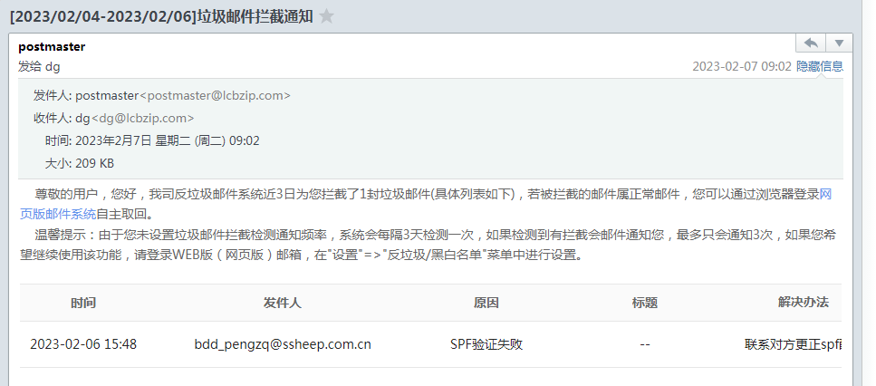 需要注意的是,加入白名单以后就不会验证spf,但如果有人冒用对方域名发邮件,将可能会对您造成损失。推荐联系对方更新spf记录,非常感谢您长期对我司的支持!