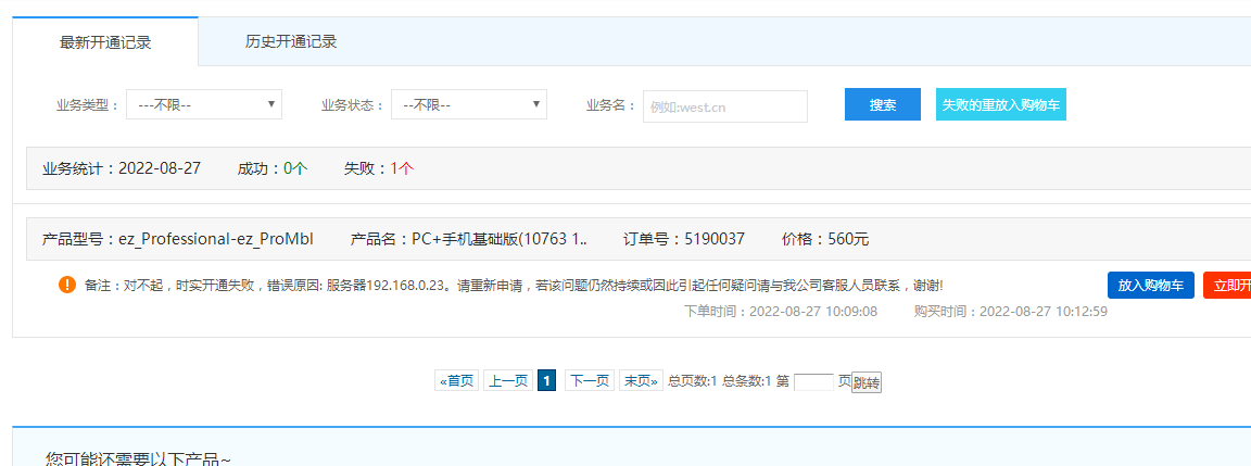 答:您好,已开通成功,请到管理中心查看,非常感谢您长期对我司的支持.由此给您带来的不便之处,敬请原谅!谢谢!