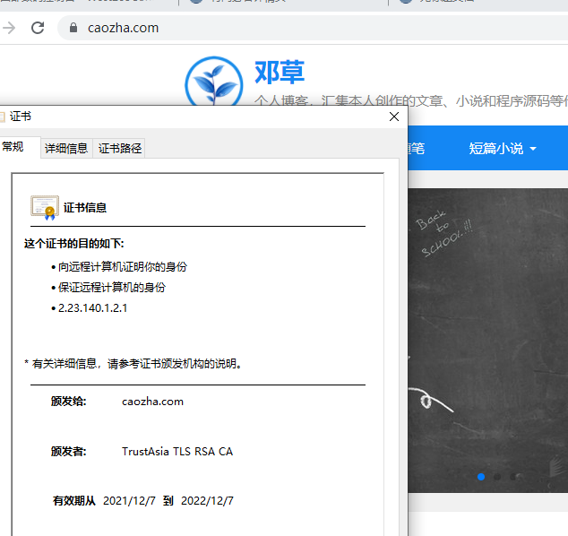 问:我刚刚重新申请了SSL证书,并且已经上传到了托管证书,网站caozha.com(是绑定在虚拟主机的子目录),访问://caozha.com/,仍然显示SSL证书没有生效,是个红叉。,caozha.com的SSL无法访问?