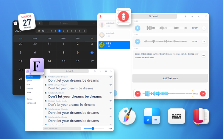 深度操作系统 20 Beta 采取统一的设计风格,从桌面环境和应用重新进行设计,其中底层仓库、内核分别升级到 Debian 10、Kernel 5.3,全新的设计带来不一样的交互体验,同时不断优化系统各个方面,带来更加丰富的应用生态和系统稳定性,本次深度应用家族也带来了全新的设计和新的应用。