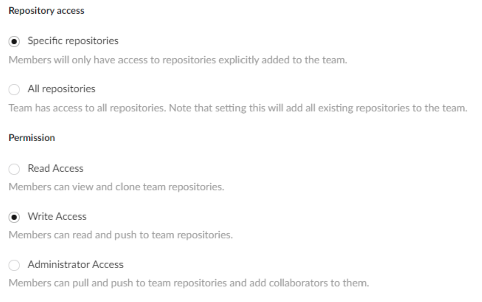 团队可以选择授予所有组织仓库权限