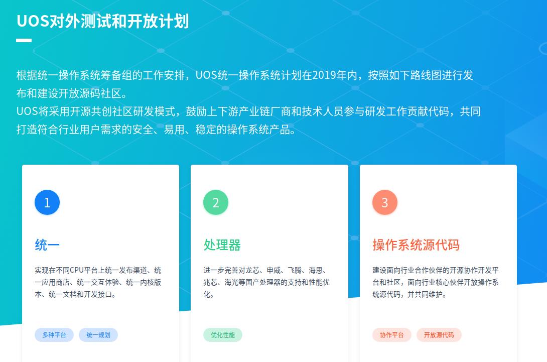 不久前我们报道过由包括中国电子集团(CEC)、武汉深之度科技有限公司、南京诚迈科技、中兴新支点在内的多家国内操作系统核心企业自愿发起“UOS(unity operating system)统一操作系统筹备组”,以共同打造“UOS 统一操作系统”。官方介绍称:“UOS 将采用开源共创社区研发模式,鼓励上下游产业链厂商和技术人员参与研发工作贡献代码,共同打造符合行业用户需求的安全、易用、稳定的操作系统产品。”