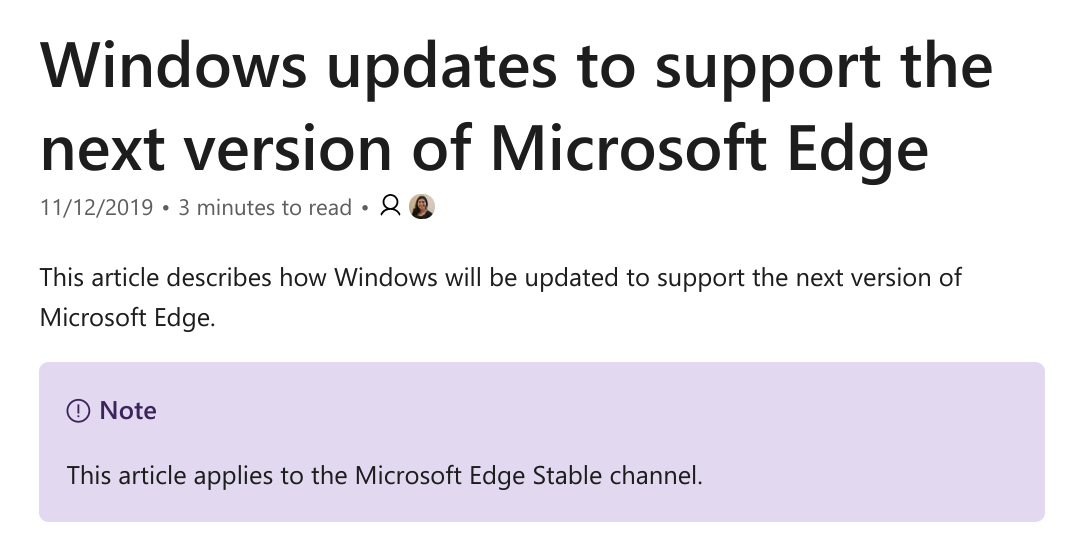 微软的文档写到:“下一版本的 Microsoft Edge 具有更频繁、更灵活的更新功能。由于浏览器版本不与 Windows 主要版本绑定,因此将对操作系统进行更改,以确保下一版本的 Microsoft Edge 无缝地适合 Windows。因此,功能更新将在大约 6 周的周期内发布。安全性和兼容性更新将根据需要提供。”