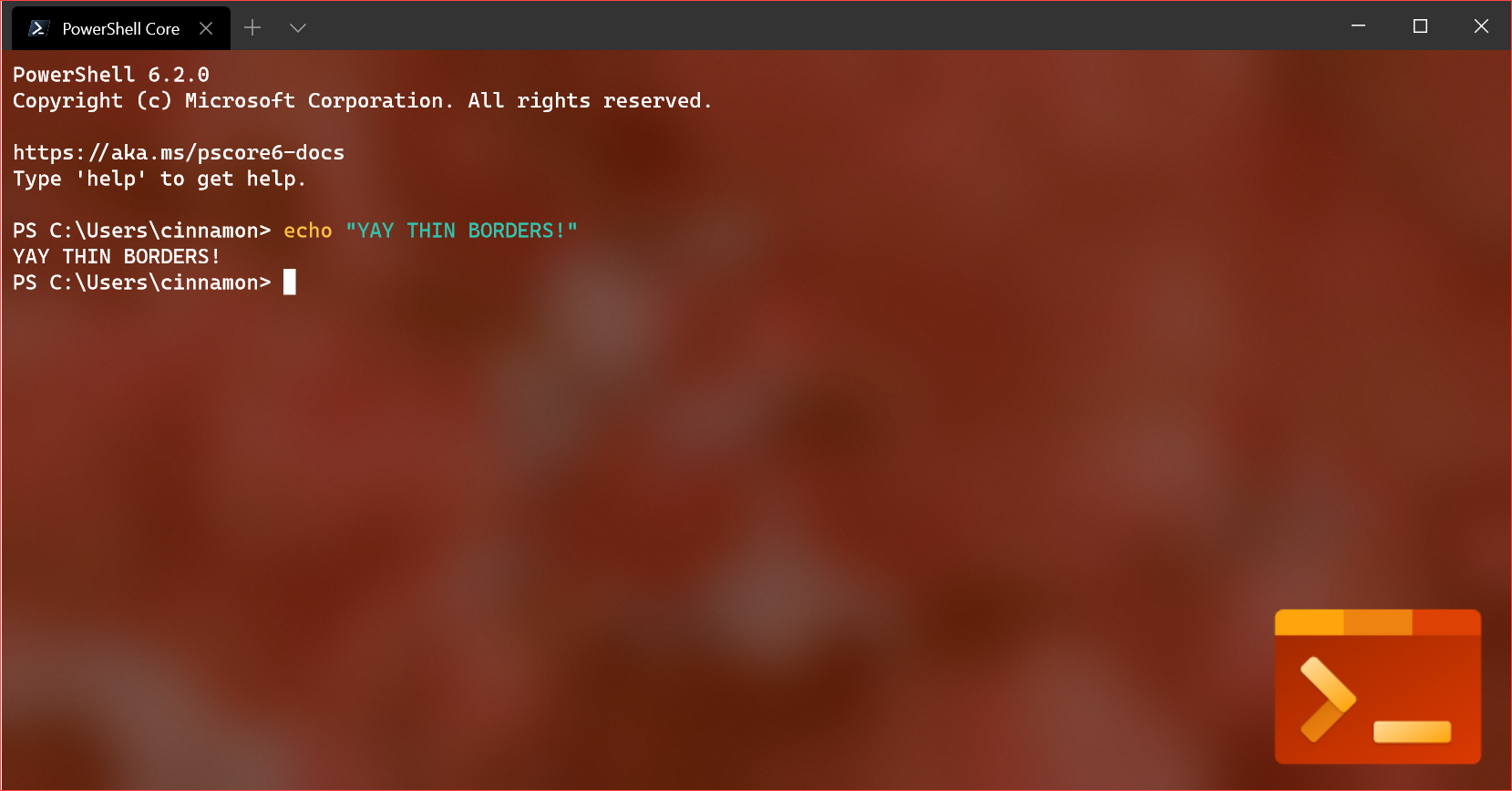 Terminal不再有粗边框。新版本中边框要细很多,并且在Windows设置的“颜色”页面中设置边框时会显示您的强调颜色。