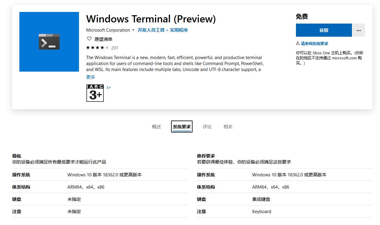 Microsoft store 安装地址:https://www.microsoft.com/zh-cn/p/windows-terminal-preview/9n0dx20hk701?activetab=pivot:overviewtab