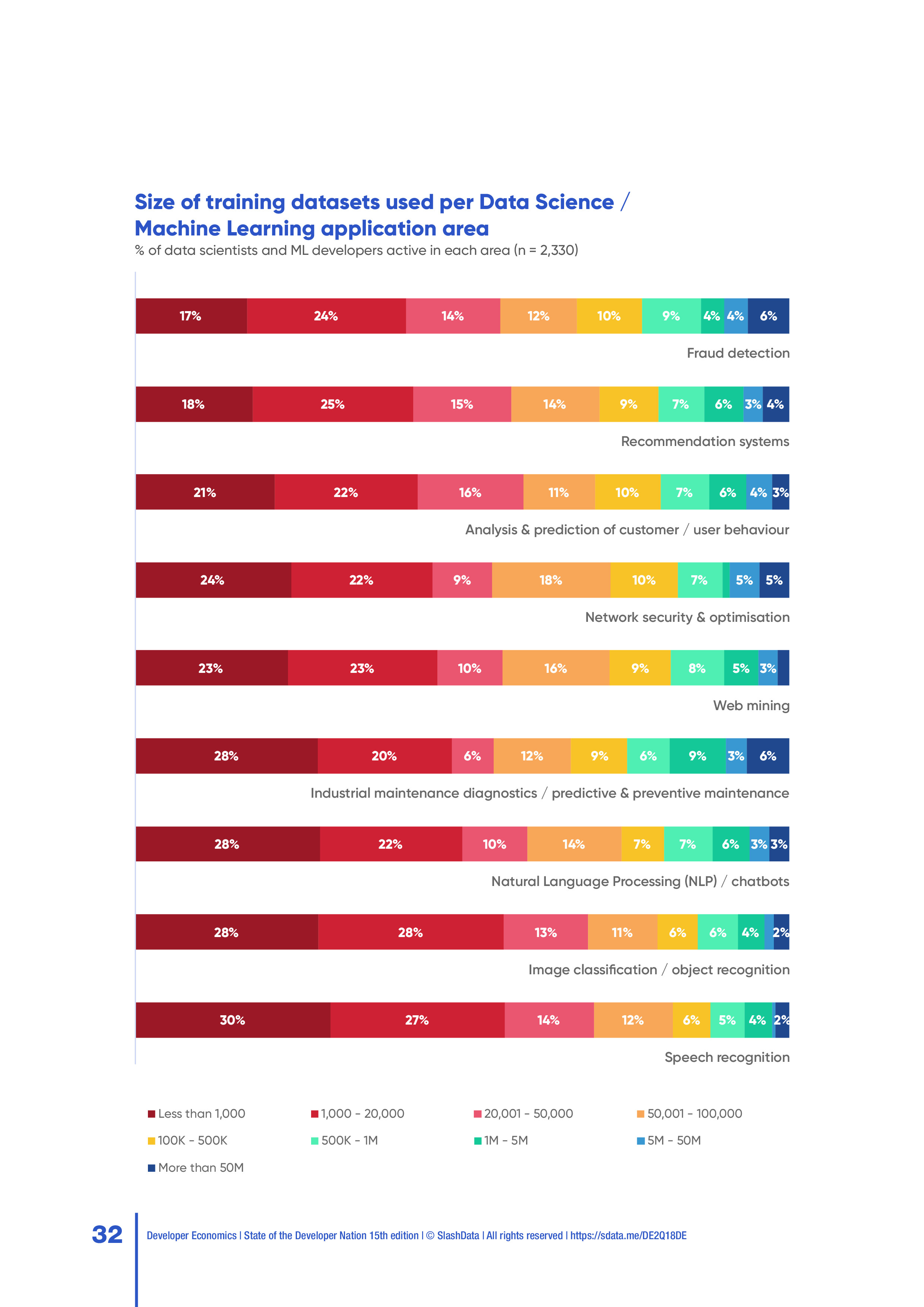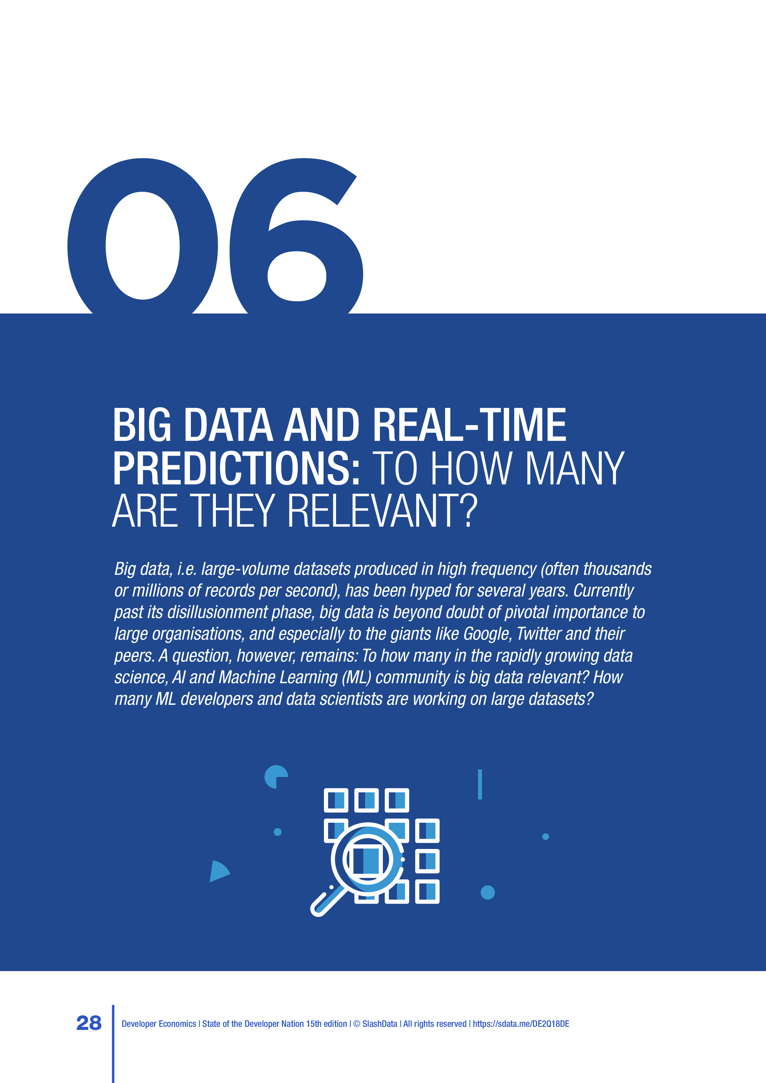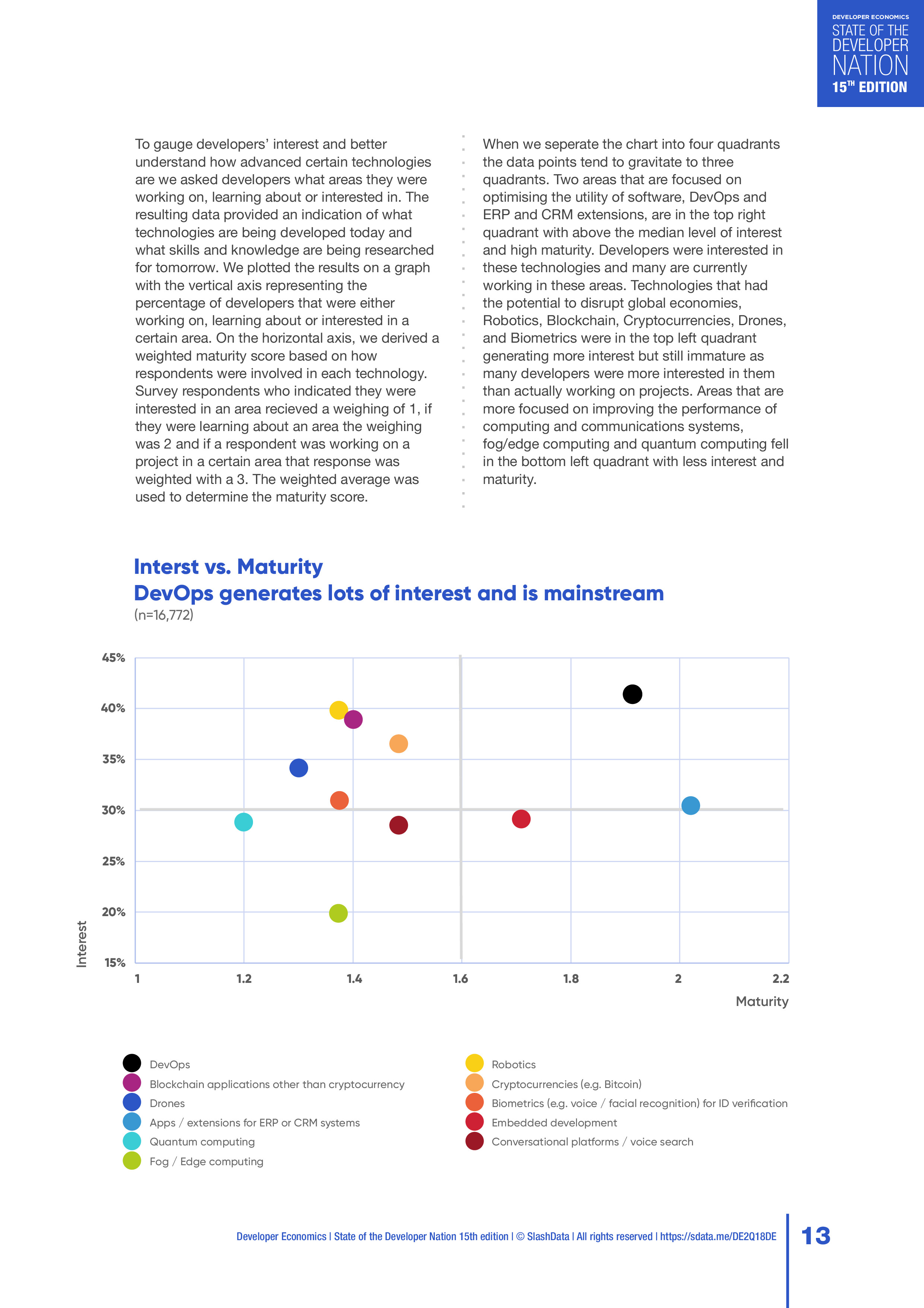 SlashData发布了“2018年第二季度开发者报告”,调查了167个国家的20,500多名开发人员,包括移动、PC、物联网、云计算、网络、游戏、增强显示和虚拟现实、机器学习等开发人员,以及数据科学家。