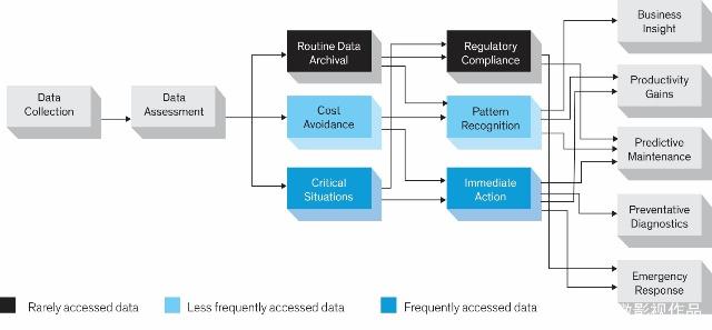 在设计有效的数据管理策略之前,了解如何使用收集的数据非常有用。在典型情况下(图1),网络边缘的传感器和控制设备不断收集数据,网关将数据传输到内部或公共云。收集的数据需要根据访问频率进行快速评估和分类。例如,将频繁访问关键警报数据以确保修复已到位并执行站点级别操作,而收集的符合法规要求的日志/例行数据需要存档,并且只能通过例外访问。
