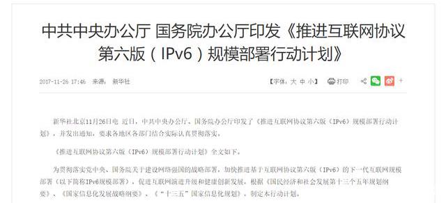 2017年底,国家开始推行IPv6普及,预计2年后达到5亿用户。