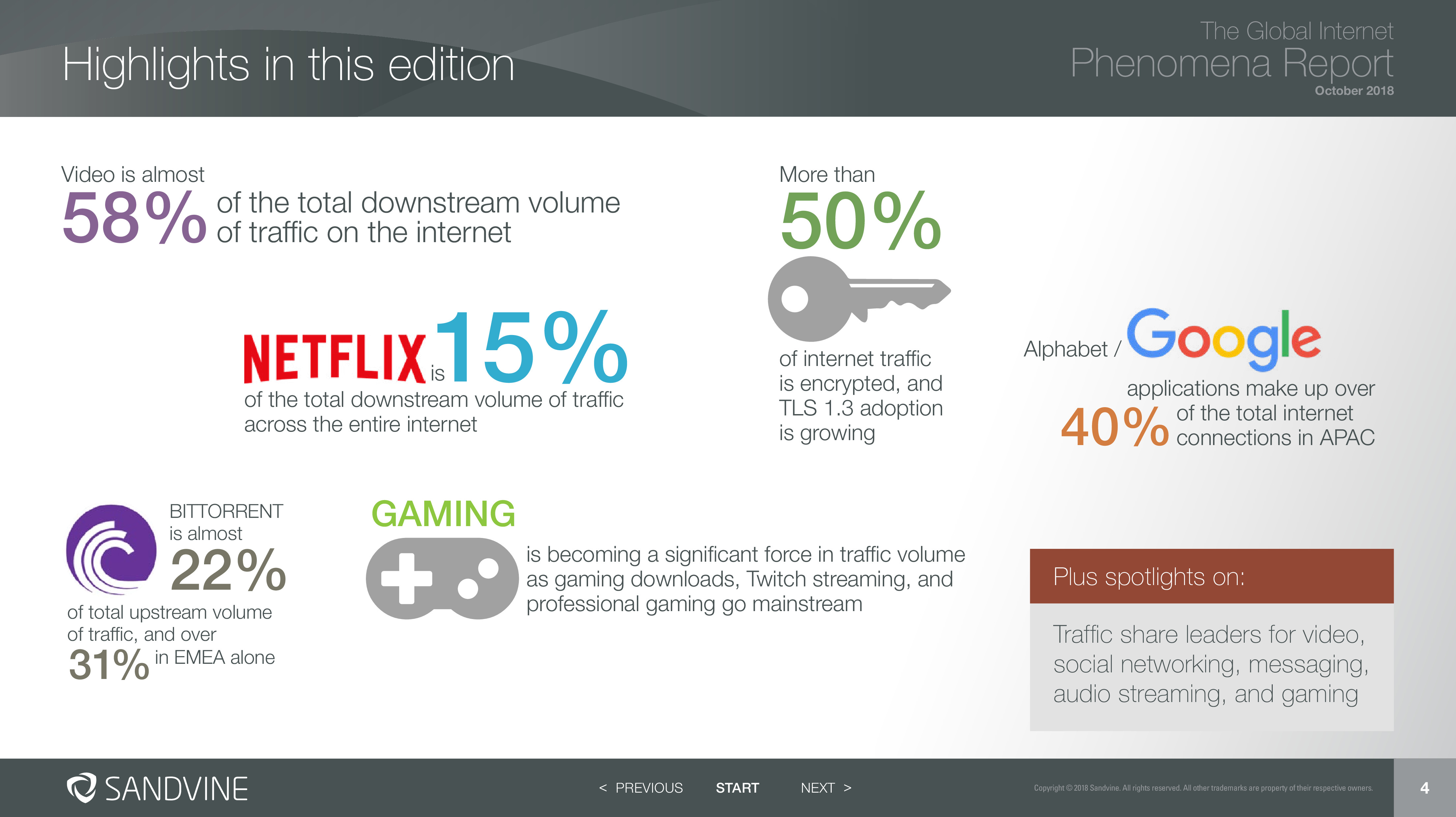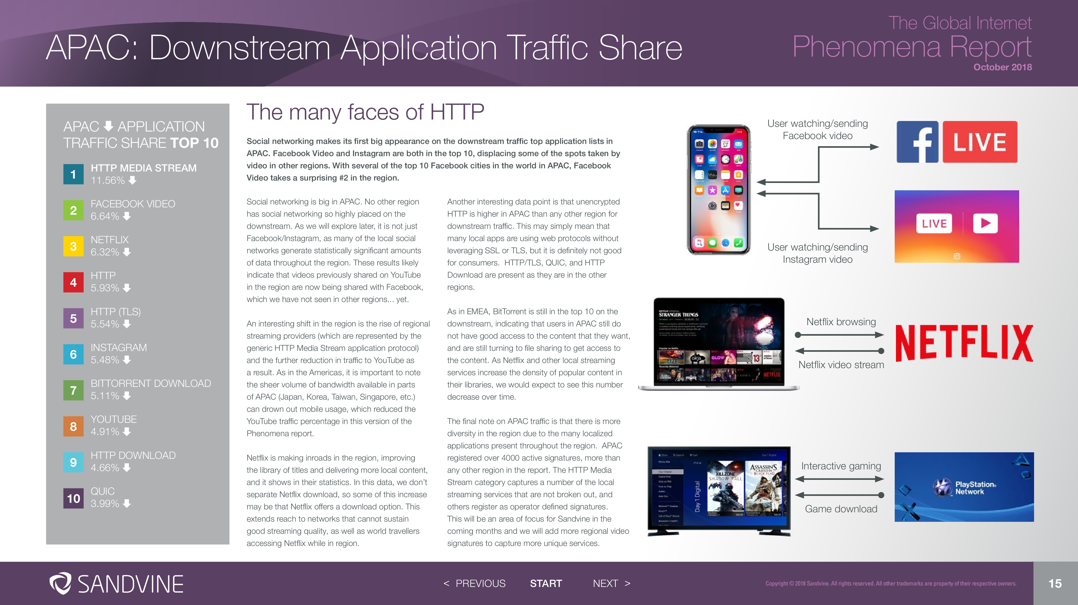根据Sandvine的“全球互联网现象报告”,今年推动网络发展的趋势和前一年有很大不同。