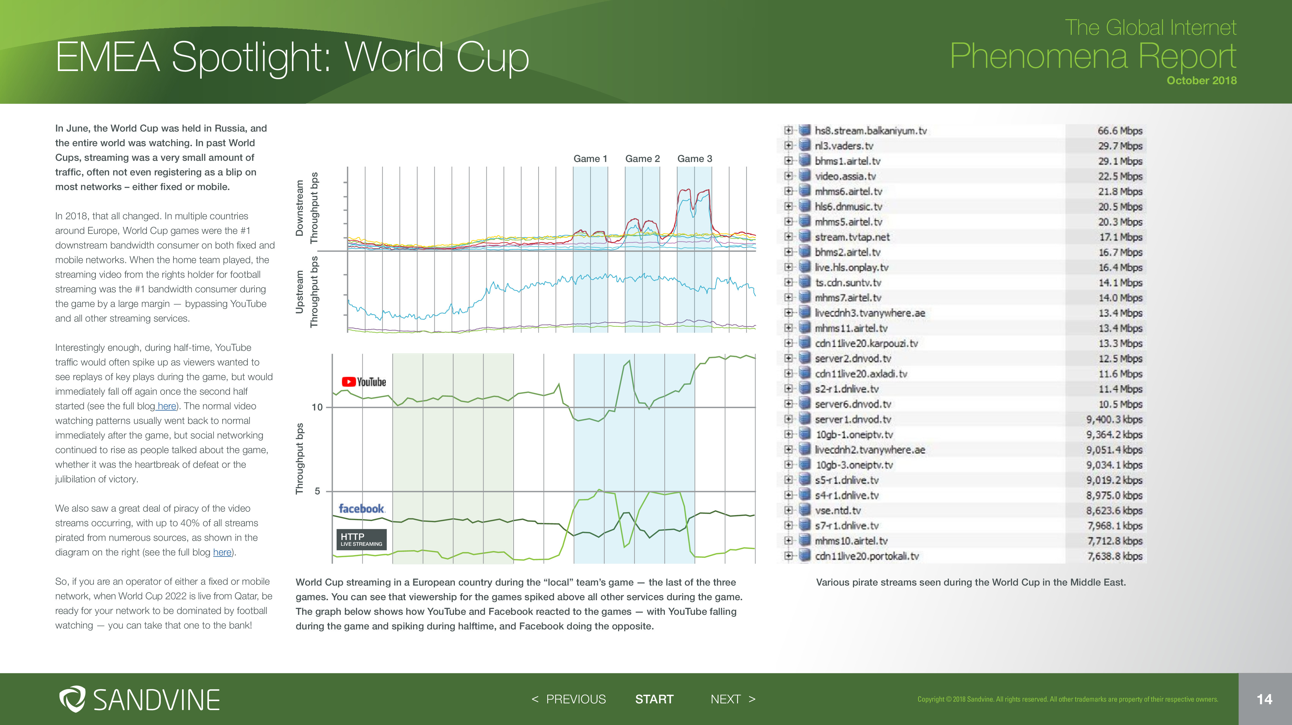 直播开始对网络产生明显影响。世界杯和超级碗是全球网络高峰的贡献者,超过了YouTube和其他视频应用。