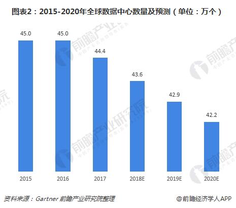 虽然全球数据中心市场规模总体平稳增长,但数据却在减少。从2017年开始,伴随着大型化、集约化的发展,全球数据中心数量逐步缩减。据Gartner统计,截至2017年底全球数据中心共计44.4万个,较2016年减少0.6万个,预计2020年将减少至42.2万个。