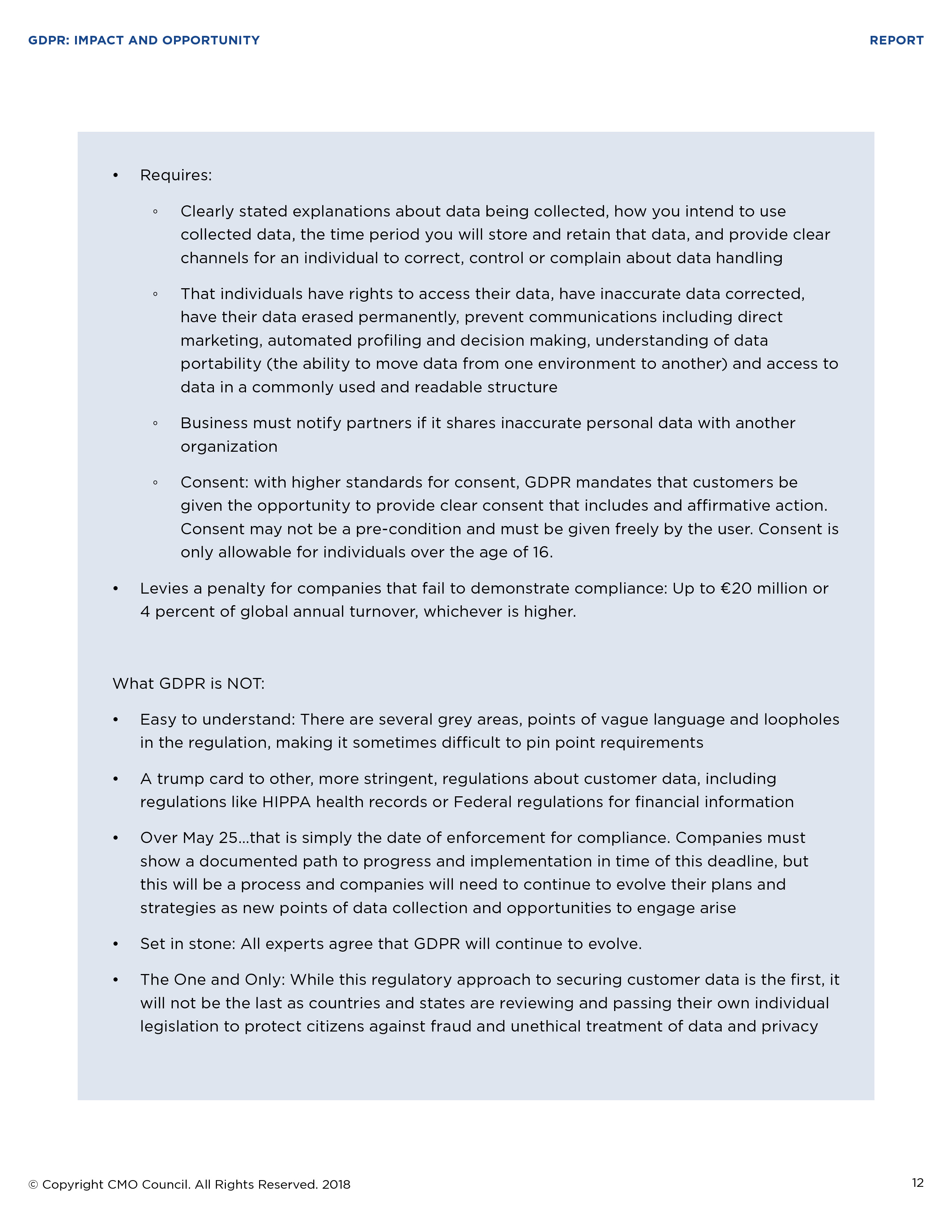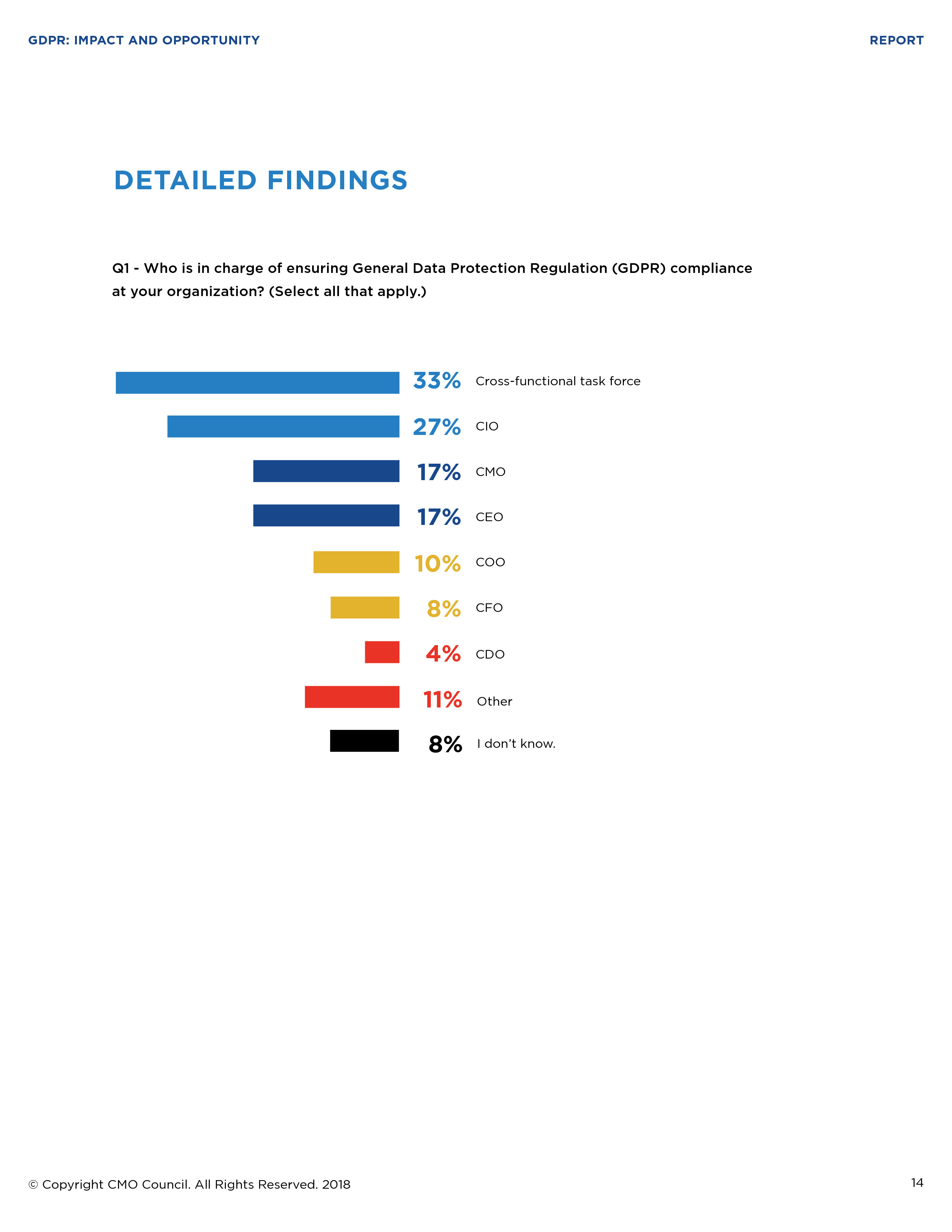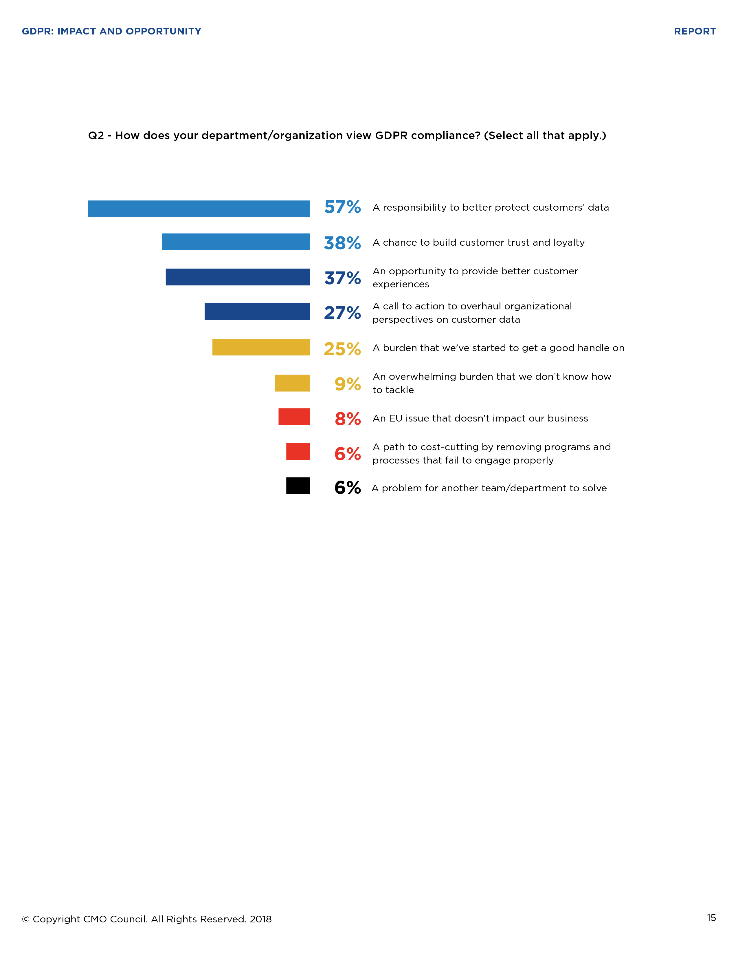 根据CMO Council和SAP追踪了GDPR带来的影响和机遇,以下是该研究报告的几个主要观点:
