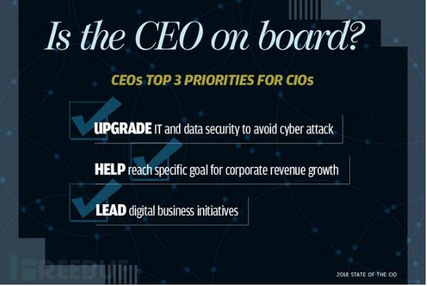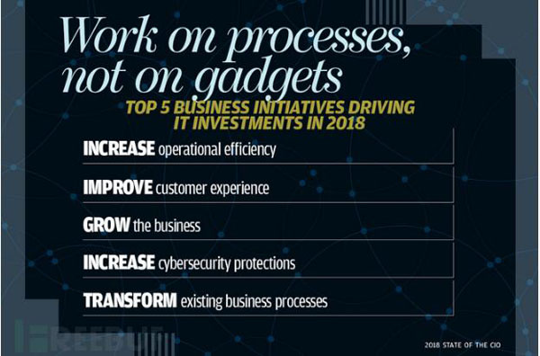 每年,首席信息官(CIO)官网都会发起名为“State of the CIO”的CIO现状调查,今年的调查报告已经出炉,这些调查数据将帮助你窥悉CIO角色在今天商业环境中的演变趋势,有助于你了解2018下半年的企业信息化发展态势并确定自身企业相关议程。