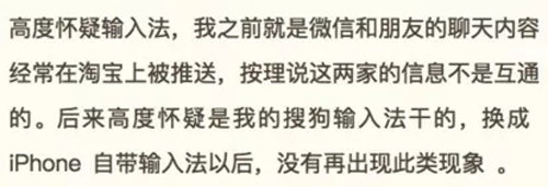 就像如果是我在今日头条搜索了某个关键字,你就给我老推送这个关键字相关的信息,没问题,美其名曰「算法推荐」。但是这种跨应用和厂商之间的数据互通就有点侵犯隐私了。
