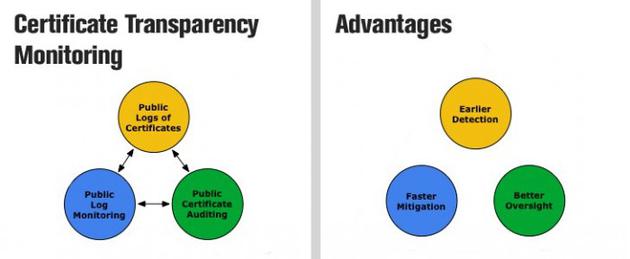 CT日志记录策略规定证书颁发机构(CA) – 颁发SSL证书以支持HTTPS连接的组织必须发布包含他们每天发布的所有SSL证书的日志。这些日志必须要是公开的。因此浏览器厂商、CA同行以及独立研究人员都能自由地随时调查是否存在错误签发的证书。