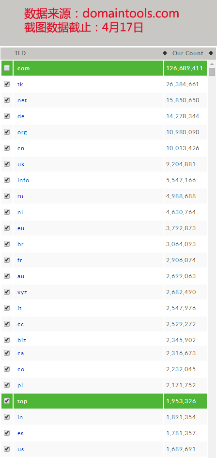 .top登上200万阵营,正式步入全球顶级域名200万俱乐部。位列通用顶级域名全球第七位(包括com,net,org,biz,info),同时注册量逼近biz。在全球所有域名注册重量方面(包括国别域名cctld),.top域名位列22名。在波兰国家后缀(.pl)与印度国家后缀(.in)之间。