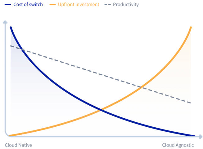 那么,这如何适用于云不可知论呢?是否可以简化云的独立性?有人说,“云不可知论架构是一个误解”,或者说,“如果人们相信云计算(及其速度),就不能相信不可知论”。下图显示了可用选项的范围: