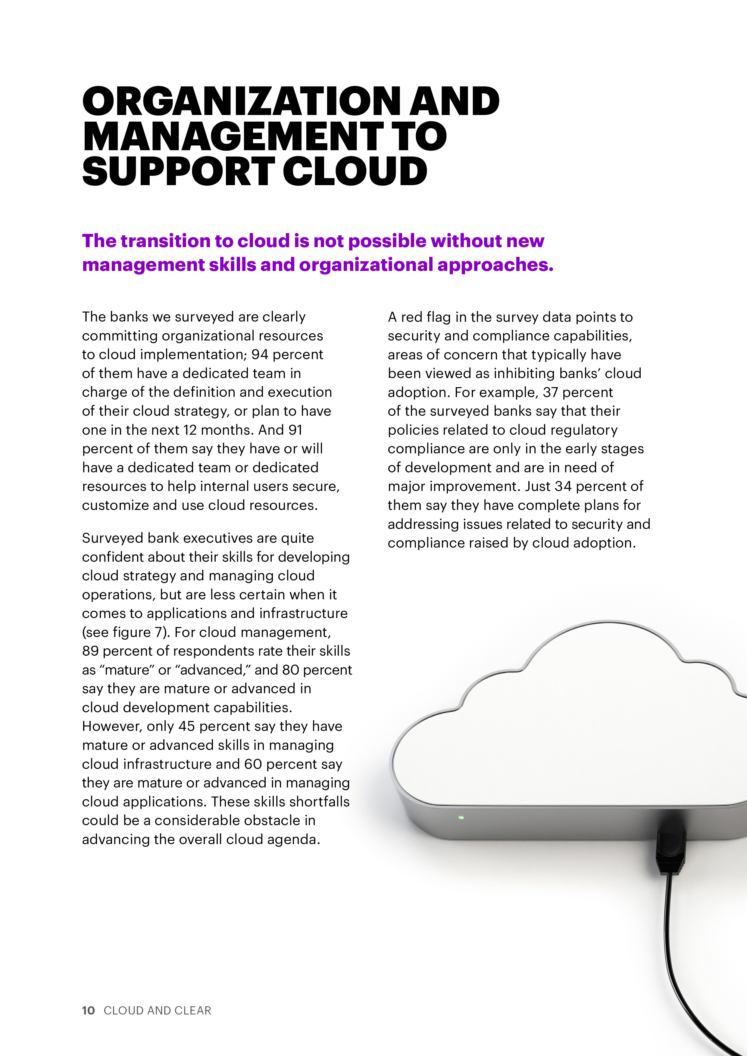 现有的旧IT基础架构。几乎所有接受调查的银行高管都表示,他们预计转向云计算将需要新的IT运营模式。事实上,超过2/3的受访者(69%)打算以“双峰”方式运营,维护关键遗留系统和那些不容易在云平台上复制的系统,同时转移其他系统并在云中添加新应用程序。