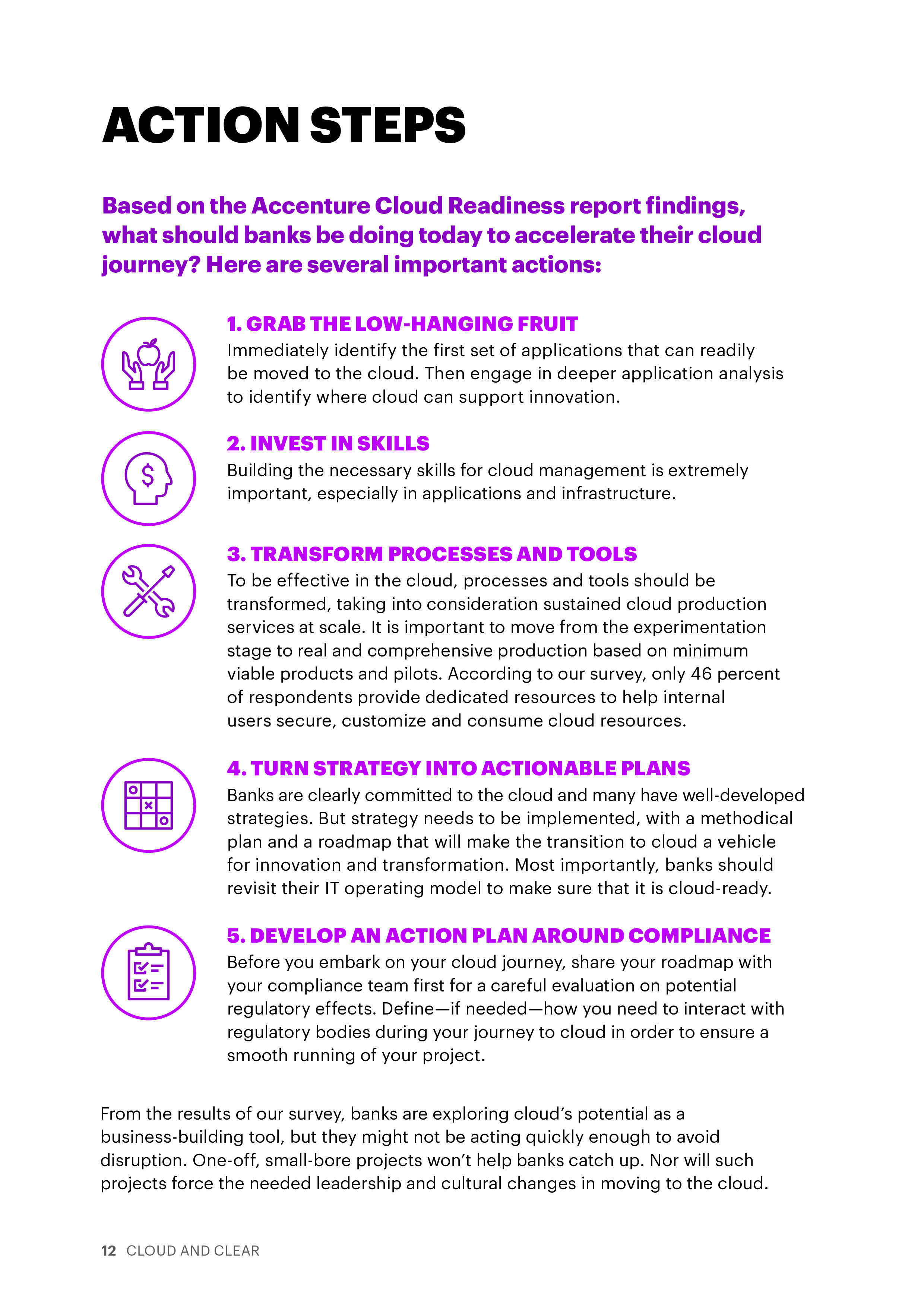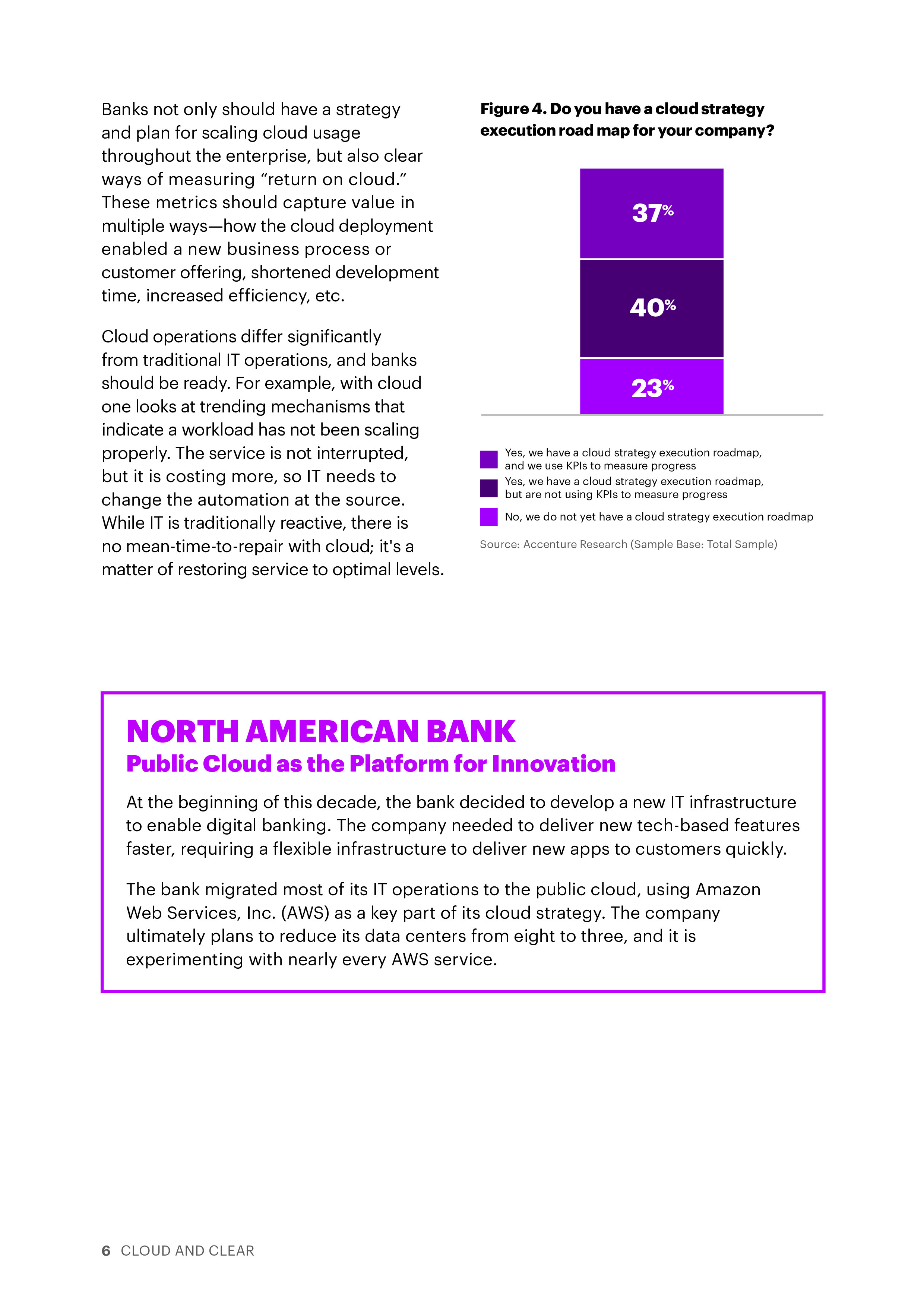 埃森哲的报告“清晰的云端”基于对全球银行高管的调查,发现云计算是银行快速添加的新服务、应用和改善客户体验不可或缺的一部分。银行家对云计算最大的期望是能够根据需要调整IT运营(77%)和更快启动应用的能力(63%),只有49%的受访者认为节省成本是最大的好处。