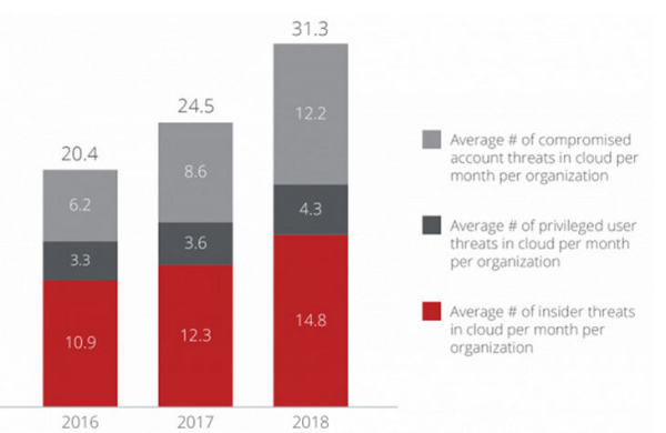 - 云中的威胁事件(如受感染的帐户、特权用户或内部威胁)同比增长27.7%。