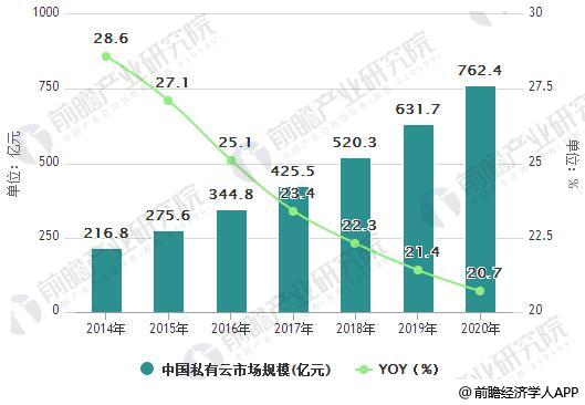2014-2020年中国私有云市场规模统计及增长情况预测