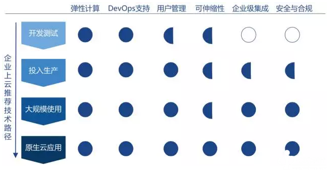所以,随着上云过程的不断深入,技术人员需要持续考察云平台的支撑能力是否能够匹配当前的上云阶段的需求。