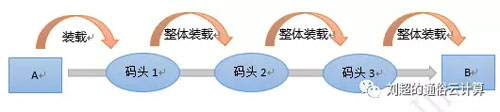 在没有集装箱的时代,假设将货物从 A 运到 B,中间要经过三个码头、换三次船。
